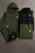 Discover the perfect balance of comfort, design, and sporty elegance with this complete Adidas tracksuit. Comprising a hoodie, quilted vest, joggers, a t-shirt, and a matching cap, this kit embodies a modern and refined look, ideal for all seasons.